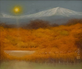 The style of the brush strokes that appear to have been rubbed on the picture blur the outline of the objects and fully show the characteristics of the artist who established the new obscure body style of painting. The mental picture of the artist is expressed with mysterious profundity. It is like he has colorfully reconfigured an India-ink painting that truly makes us feel deep spirituality.
